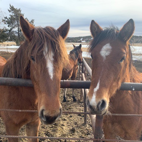 Mrs. Frizzle is featured on the left side next to her pal Leia who was recently adopted! Mrs. Frizzle is a spunky, fun little yearling. She is on the smaller side, possibly bordering pony size. She is extremely curious and sweet.
